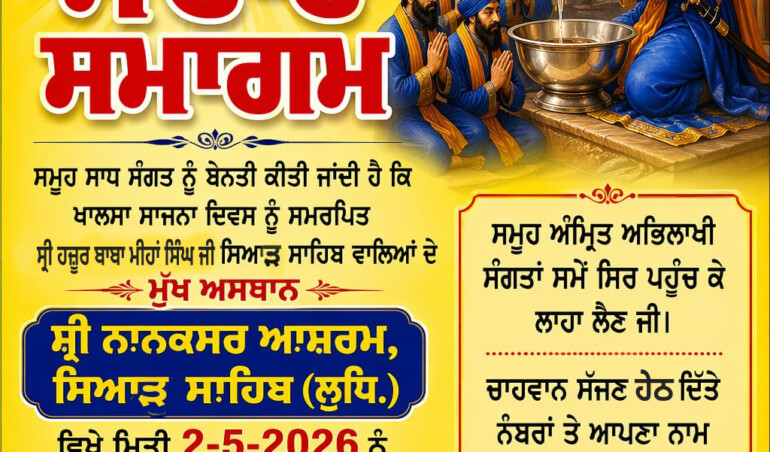 The 350th Martyrdom Celebration of Sahib Sri Guru Tegh Bahadur Ji Maharaj is being observed under the patronage of Sri Hazur Baba Harnek Singh Ji Maharaj Ji Siahar Sahib Wale at Sri Nanaksar Ashram, Siahar…